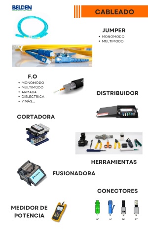 CABLEADO JUMPER MONOMODO MULTIMODO F.O MONOMODO MULTIMODO ARMADA DISTRIBUIDOR DIELECTRICA Y MÁS... CORTADORA HERRAMIENTAS FUSIONADORA CONECTORES MEDIDOR DE POTENCIA